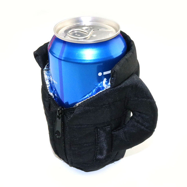 Intended for cans but still loves bottles, the beverage jacket gives you a few more options for securing your drink, both for travel, and for the actual drinking part. With two layers of thermal insulation to keep your can cold and hands dry. Fits well: 12 oz cans